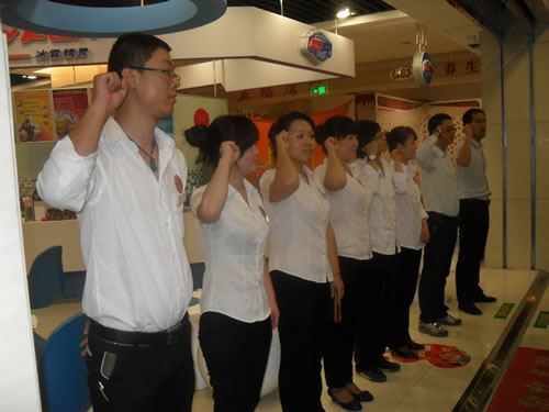 6、F6商品部管理人員帶領(lǐng)大家進行店慶宣誓。