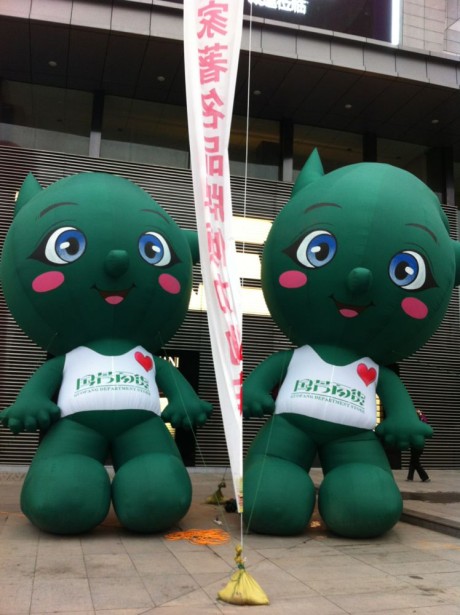 19、“Weekee”造型的巨型充氣吉祥物在店門口迎接每一位進店的顧客。
