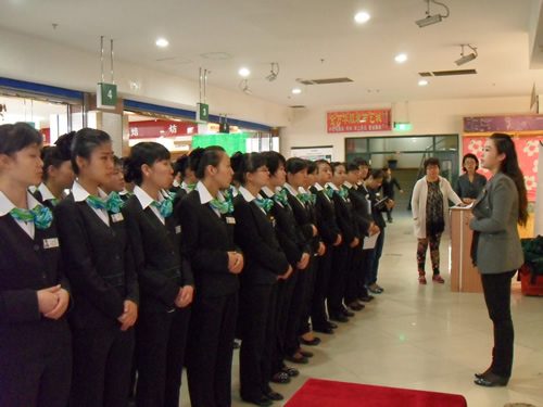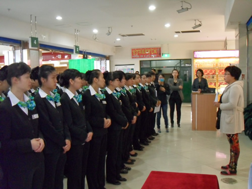2013年4月9日是一個普通的工作日,但卻是國芳集團(tuán)收銀部崗位技能管理水平提升和發(fā)展歷程上非常重要的一天,因?yàn)榻裉靽技瘓F(tuán)零售板塊蘭州地區(qū)收銀員職業(yè)技能評定工作正式拉開帷幕。早上8點(diǎn)整,在蘭州國芳綜超廣場店正式召開了本次活動的動員會,動員會由收銀部經(jīng)理韓曉麗女士主持,蒞臨現(xiàn)場的公司領(lǐng)導(dǎo)有集團(tuán)總裁助理、財(cái)務(wù)總監(jiān)余麗華女士,集團(tuán)總裁助理、人力資源總監(jiān)孟麗女士,集團(tuán)培訓(xùn)經(jīng)理、蘭州百貨人力資源經(jīng)理孫曉輝女士,綜超人力資源經(jīng)理馬琳先生。