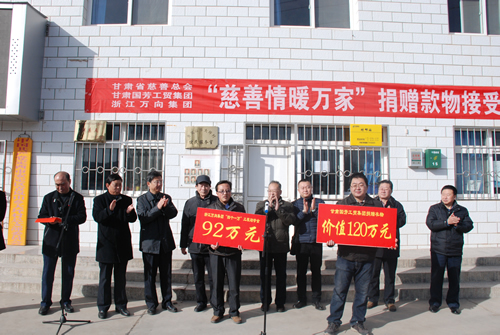 近年來(lái),甘肅國(guó)芳工貿(mào)集團(tuán)在大力發(fā)展的同時(shí),始終沒(méi)有忘記對(duì)我區(qū)貧困群體的關(guān)愛(ài)和幫助,至今已累計(jì)對(duì)外捐贈(zèng)現(xiàn)金物資達(dá)到5000余萬(wàn)元。有力地支援了我區(qū)救災(zāi)工作和各項(xiàng)公益事業(yè)。這些善事、好事、實(shí)事,極大地彰顯了中華民族扶貧濟(jì)困、大愛(ài)無(wú)疆的傳統(tǒng)美德,體現(xiàn)了成功企業(yè)家的社會(huì)責(zé)任。